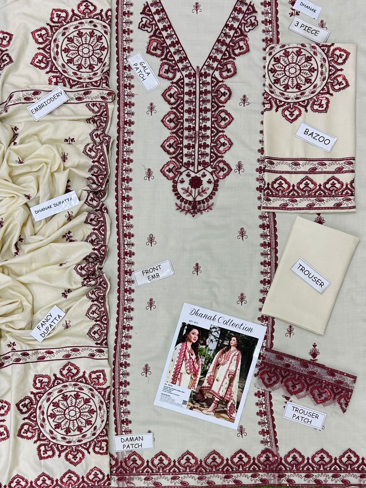 Experience elegance with this premium 3-piece embroidered suit crafted from high-quality Air-Jet Dhanak fabric. The...