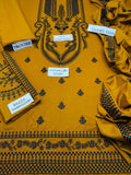 Experience elegance with this premium 3-piece embroidered suit crafted from high-quality Air-Jet Dhanak fabric. The front flaunts intricate full embroidery, complemented by heavily embroidered shoulders and sleeves for a sophisticated look. The back and trousers remain plain, balancing the design with understated elegance. Completing the ensemble is a digitally printed soft pashmina wool shawl, adding comfort and a luxurious touch. Perfect for formal occasions, this suit offers both style and refinement with guaranteed Dhanak quality.