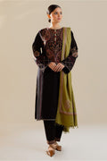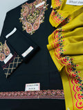 Experience elegance with this premium 3-piece embroidered suit crafted from high-quality Air-Jet Dhanak fabric. The front flaunts intricate full embroidery, complemented by heavily embroidered shoulders and sleeves for a sophisticated look. The back and trousers remain plain, balancing the design with understated elegance. Completing the ensemble is a digitally printed soft pashmina wool shawl, adding comfort and a luxurious touch. Perfect for formal occasions, this suit offers both style and refinement with guaranteed Dhanak quality.